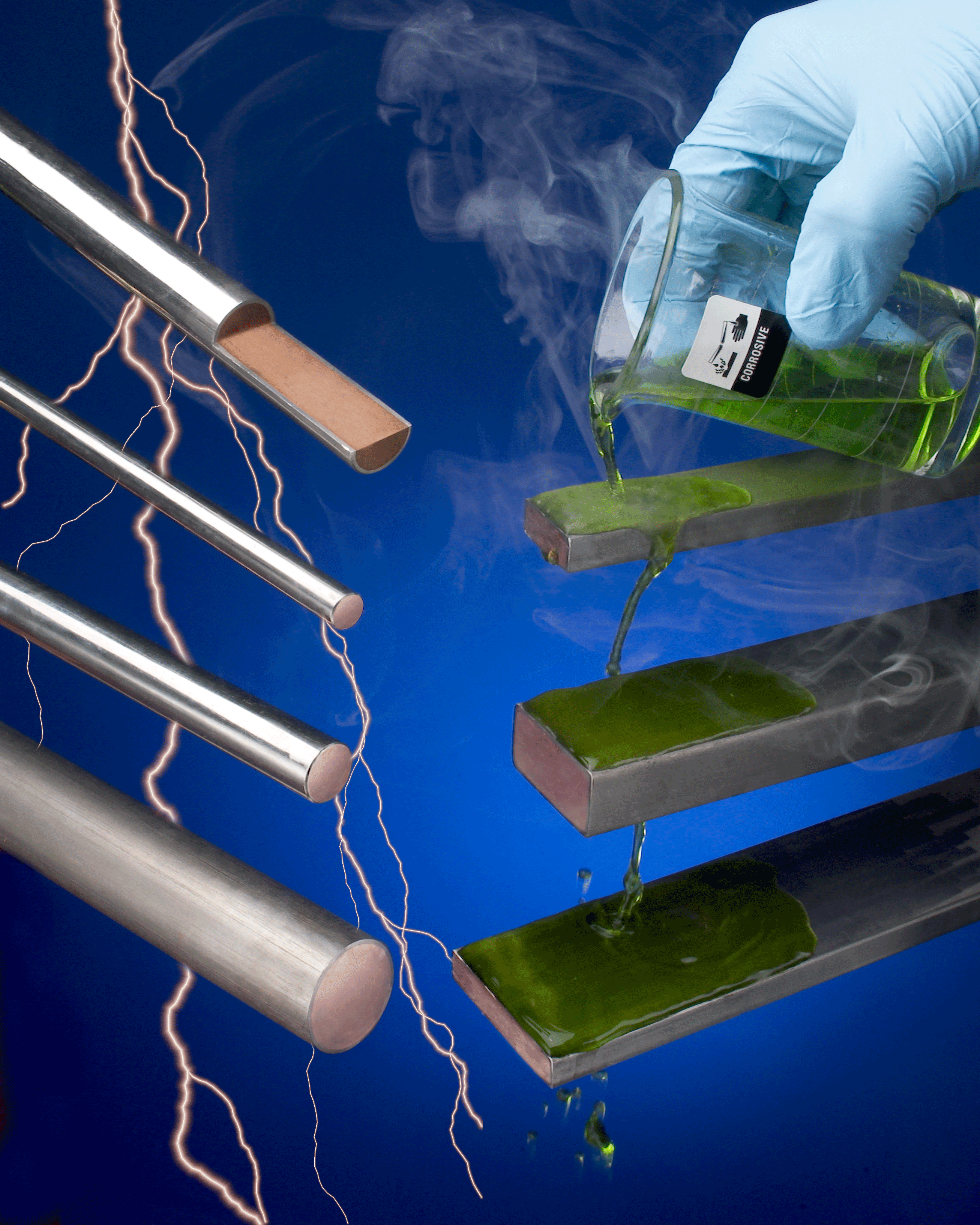 Anomet Titanium Clad Copper Electrodes feature a large OFHC copper core to provide uniform current distribution and a metallurgically-bonded titanium cladding for optimum corrosion resistance. Ideal for applications requiring high current carrying capacities in extremely corrosive processes, they can withstand extreme thermal cycling and are ductile for shaping and forming.